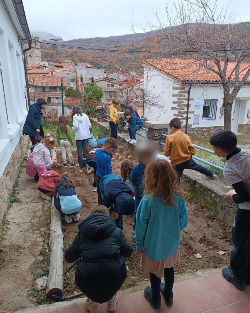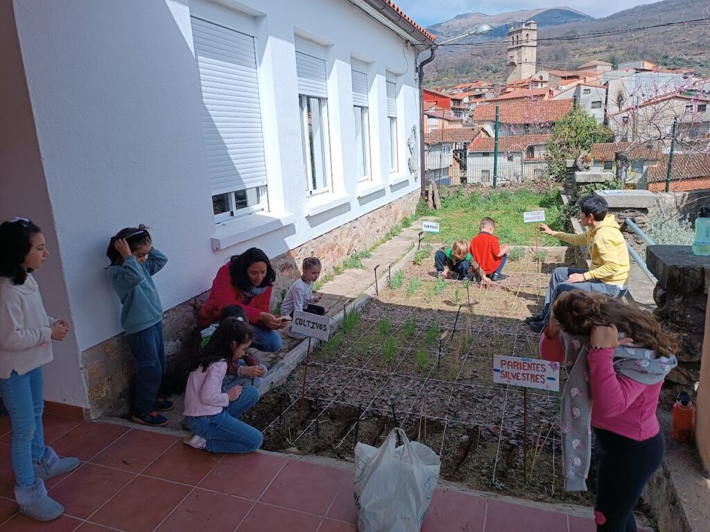 The two educational gardens at San Martín Primary School, where crops, one containing cereals (wheat, oats and barley), pulses (lupin, peas and broad beans) and lettuce, and the other containing...